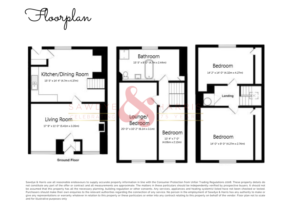 GENERAL INFORMATION All measurements, floor plans, and land plans are provided for illustrative purposes only and are approximate. Measurements are quoted in imperial with metric equivalents, for general guidance only. While every effort is made to ensure accuracy, these sales particulars must not be relied upon, and all details should be confirmed by the buyer's solicitor or surveyor. Sawdye & Harris has not tested any services, systems, or appliances and no guarantee can be given regarding their condition or working order.