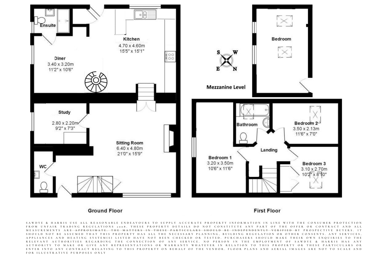 GENERAL INFORMATION All measurements, floorplans, and land plans are provided for illustrative purposes only and are approximate. Measurements are quoted in imperial with metric equivalents, for general guidance only. While every effort is made to ensure accuracy, these sales particulars must not be relied upon, and all details should be confirmed by the buyer's solicitor or surveyor. Sawdye & Harris has not tested any services, systems, or appliances and no guarantee can be given regarding their condition or working order.