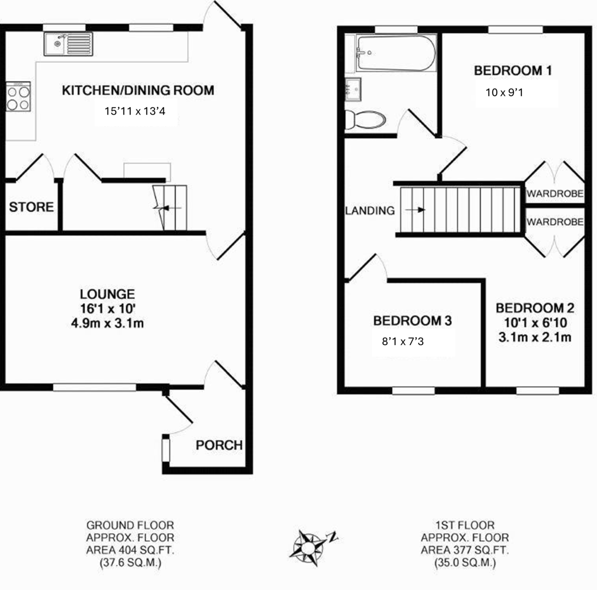FIRST FLOOR The property offers three bedrooms each with a light and airy feel. The main bedroom is a generous double, offering space for free standing wardrobe, while enjoying a outlook to the rear elevation. The second and third bedrooms provide an outlook to the front and all rooms are finished with fitted carpets.