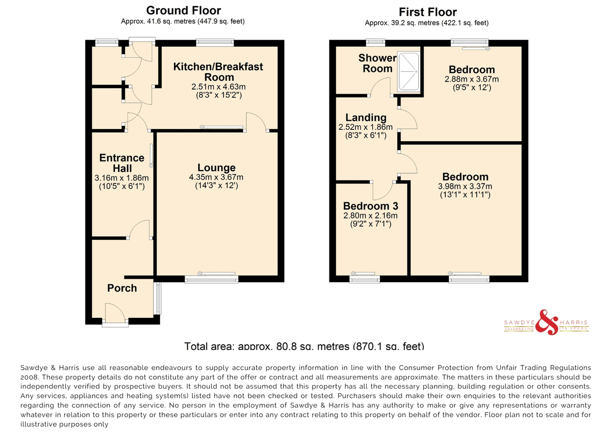 PLEASE NOTE All measurements, floorplans, and land plans are provided for illustrative purposes only and are approximate. Measurements are quoted in imperial with metric equivalents, for general guidance only. While every effort is made to ensure accuracy, these sales particulars must not be relied upon, and all details should be confirmed by the buyer's solicitor or surveyor. Sawdye & Harris has not tested any services, systems, or appliances and no guarantee can be given regarding their condition or working order. Photographs are for marketing purposes only. Fixtures and fittings shown may not be included unless specifically stated. Some items may be available by separate negotiation. If there are important matters which are likely to affect your decision to buy, please contact us before viewing the property.