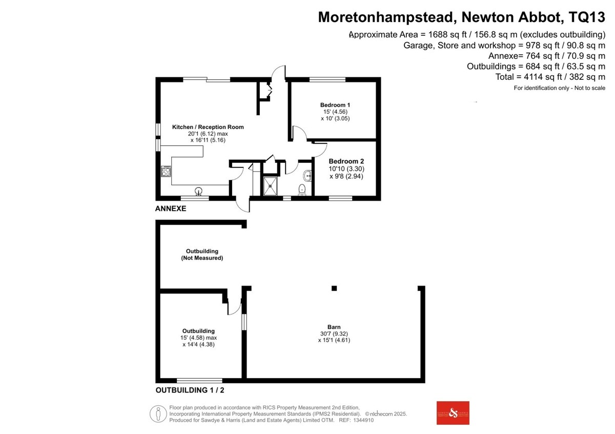 All measurements, floorplans, and land plans are provided for illustrative purposes only and are approximate. Measurements are quoted in imperial with metric equivalents, for general guidance only. While every effort is made to ensure accuracy, these sales particulars must not be relied upon, and all details should be confirmed by the buyer's solicitor or surveyor. Sawdye & Harris has not tested any services, systems, or appliances and no guarantee can be given regarding their condition or working order. Photographs are for marketing purposes only. Fixtures and fittings shown may not be included unless specifically stated. Some items may be available by separate negotiation. If there are important matters which are likely to affect your decision to buy, please contact us before viewing the property.