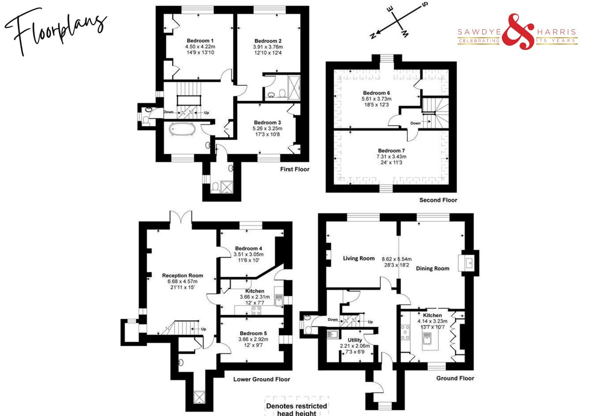 All measurements, floorplans, and land plans are provided for illustrative purposes only and are approximate. Measurements are quoted in imperial with metric equivalents, for general guidance only. While every effort is made to ensure accuracy, these sales particulars must not be relied upon, and all details should be confirmed by the buyer's solicitor or surveyor. Sawdye & Harris has not tested any services, systems, or appliances and no guarantee can be given regarding their condition or working order.