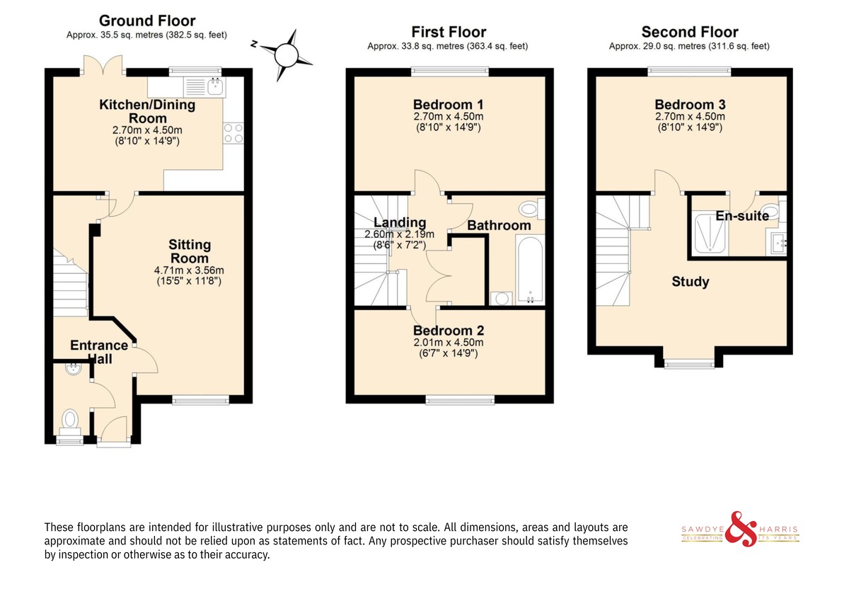 PLEASE NOTE All measurements, floorplans, and land plans are provided for illustrative purposes only and are approximate. Measurements are quoted in imperial with metric equivalents, for general guidance only. While every effort is made to ensure accuracy, these sales particulars must not be relied upon, and all details should be confirmed by the buyer's solicitor or surveyor. Sawdye & Harris has not tested any services, systems, or appliances and no guarantee can be given regarding their condition or working order. Photographs are for marketing purposes only. Fixtures and fittings shown may not be included unless specifically stated. Some items may be available by separate negotiation. If there are important matters which are likely to affect your decision to buy, please contact us before viewing the property.