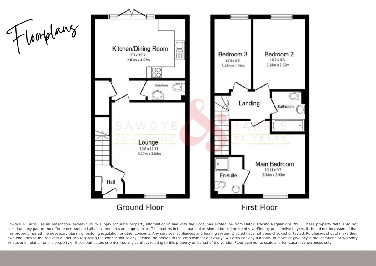 PLEASE NOTE All measurements, floorplans, and land plans are provided for illustrative purposes only and are approximate. Measurements are quoted in imperial with metric equivalents, for general guidance only. While every effort is made to ensure accuracy, these sales particulars must not be relied upon, and all details should be confirmed by the buyer's solicitor or surveyor. Sawdye & Harris has not tested any services, systems, or appliances and no guarantee can be given regarding their condition or working order. Photographs are for marketing purposes only. Fixtures and fittings shown may not be included unless specifically stated. Some items may be available by separate negotiation. If there are important matters which are likely to affect your decision to buy, please contact us before viewing the property.