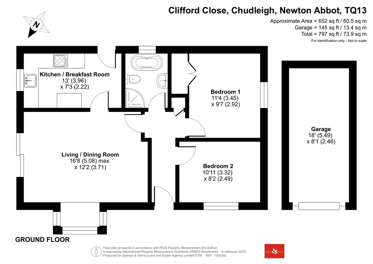 All measurements, floor plans, and land plans are provided for illustrative purposes only and are approximate. Measurements are quoted in imperial with metric equivalents, for general guidance only. While every effort is made to ensure accuracy, these sales particulars must not be relied upon, and all details should be confirmed by the buyer's solicitor or surveyor. Sawdye & Harris has not tested any services, systems, or appliances and no guarantee can be given regarding their condition or working order. Photographs are for marketing purposes only. Fixtures and fittings shown may not be included unless specifically stated. Some items may be available by separate negotiation. If there are important matters which are likely to affect your decision to buy, please contact us before viewing the property.