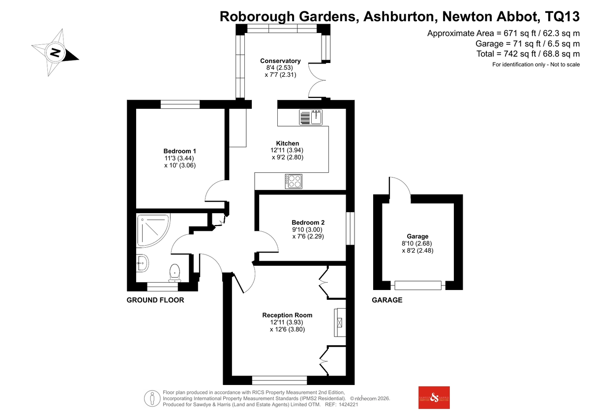 PLEASE NOTE All measurements, floorplans, and land plans are provided for illustrative purposes only and are approximate. Measurements are quoted in imperial with metric equivalents, for general guidance only. While every effort is made to ensure accuracy, these sales particulars must not be relied upon, and all details should be confirmed by the buyer's solicitor or surveyor. Sawdye & Harris has not tested any services, systems, or appliances and no guarantee can be given regarding their condition or working order. Photographs are for marketing purposes only. Fixtures and fittings shown may not be included unless specifically stated. Some items may be available by separate negotiation. If there are important matters which are likely to affect your decision to buy, please contact us before viewing the property.