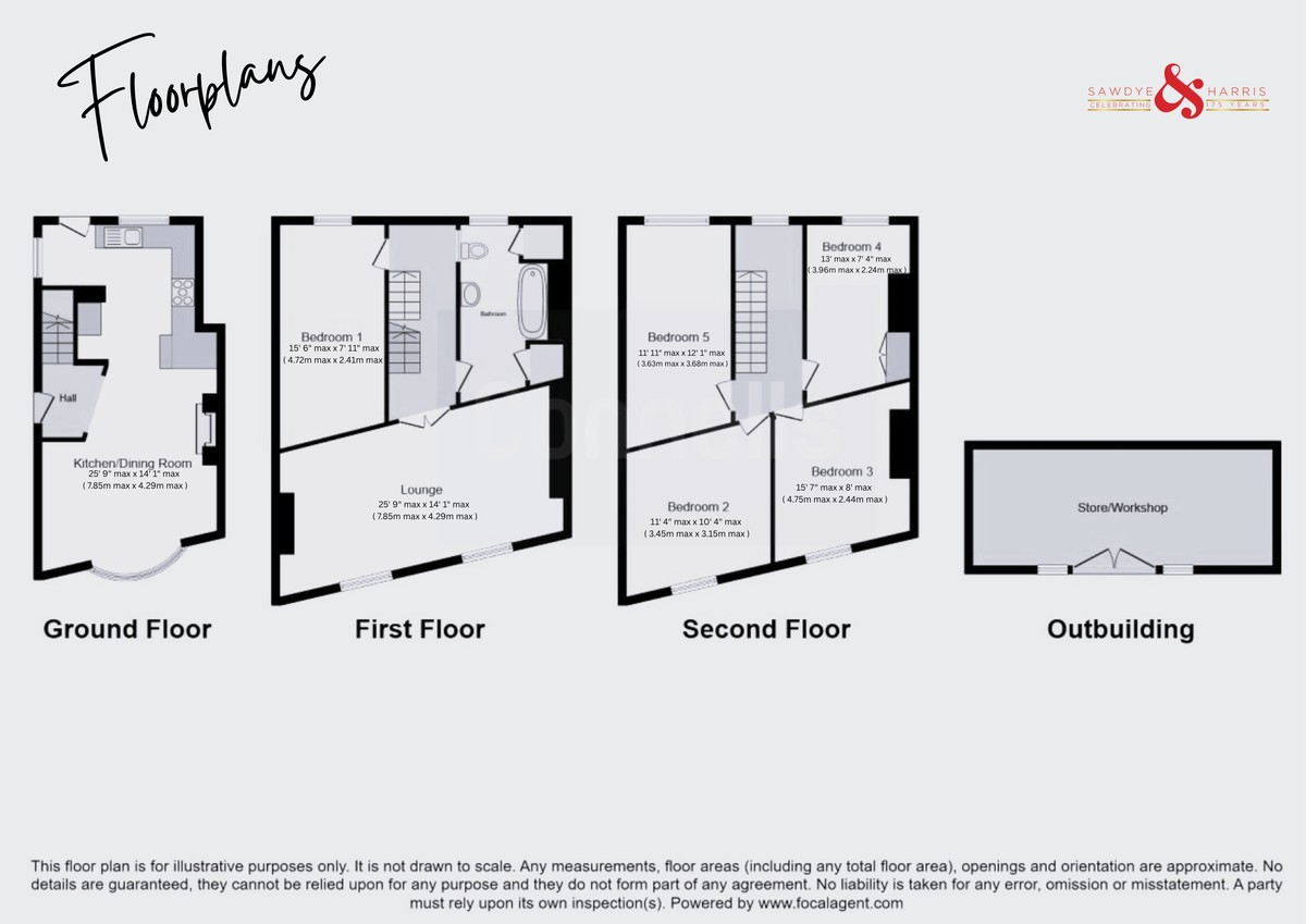All measurements, floor plans, and land plans are provided for illustrative purposes only and are approximate. Measurements are quoted in imperial with metric equivalents, for general guidance only. While every effort is made to ensure accuracy, these sales particulars must not be relied upon, and all details should be confirmed by the buyer's solicitor or surveyor. Sawdye & Harris has not tested any services, systems, or appliances and no guarantee can be given regarding their condition or working order.